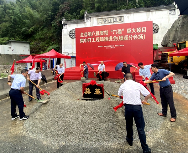 6月19日,安徽省第六批貫徹“六穩(wěn)”重大項目集中開工現(xiàn)場推進會(績溪分會場)在公司承建的S456績溪至譚家橋公路上金山隧道項目舉行,該項目開工儀式也同期舉辦??兿h委書記黃德泉現(xiàn)場宣布全縣第六批貫徹“六穩(wěn)”重大項目集中開工。縣委常委、常務副縣長胡旭華發(fā)表講話,公司黨委副書記、總經(jīng)理錢申春應邀出席并致辭??h政府副縣長、縣經(jīng)開區(qū)管委會主任劉林發(fā)主持儀式。