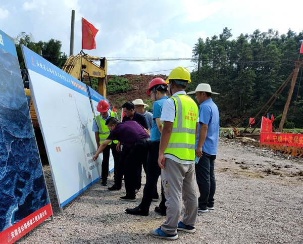 8月20日下午,安徽省交通運輸廳黨組成員、總工程師章后忠到宣涇高速涇縣樞紐互通項目調(diào)研指導(dǎo)工作。