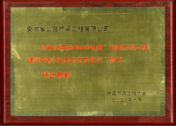 公司榮獲全國市政工程建設(shè)QC小組活動優(yōu)秀企業(yè)