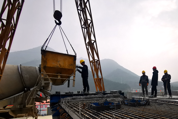 在全長8.18公里的施工線上,荊竹坑大橋、2#拌和站、2#預(yù)制梁場及鋼筋加工場等多個施工點同時多點作業(yè),多個工序同時推進(jìn)。其中,荊竹坑大橋左線2#橋橋臺施工不間斷;2#拌和站春節(jié)期間共完成砼量320方;2#預(yù)制梁場施工人員全部就地過年,加班加點作業(yè),保證每日澆筑3-4片預(yù)制橋梁板,春節(jié)期間完成近30片梁板,為全線橋梁梁板架設(shè)奠定有力基礎(chǔ)。