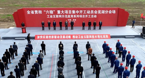 全省貫徹“六穩(wěn)”重大項(xiàng)目開工動(dòng)員會(huì)(蕪湖分會(huì)場(chǎng))在安徽建工鋼結(jié)構(gòu)智能制造產(chǎn)業(yè)化基地舉行