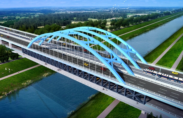 繁華大道橋是安徽省第一座軌道與城市道路共線的大跨度橋梁,軌道位于雙層橋梁的上層,采用了鋼桁架+拱協(xié)同工作的結(jié)構(gòu)體系,國內(nèi)屬于首次采用,在項目技術(shù)應(yīng)用上具有顯著的創(chuàng)新性。