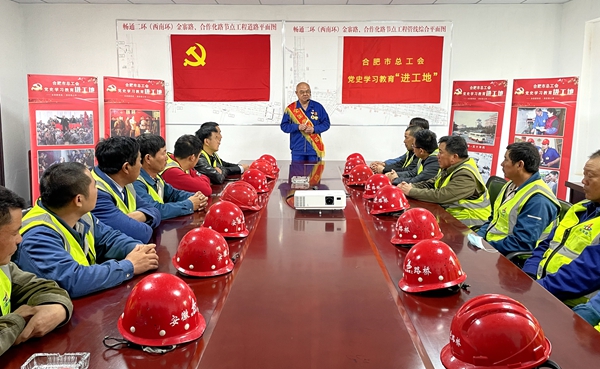 近日,由合肥市總工會(huì)組織開展的黨史學(xué)習(xí)教育“進(jìn)工地”宣講活動(dòng)來到暢通二環(huán)(西南環(huán))項(xiàng)目,全國(guó)勞動(dòng)模范徐輝為一線建設(shè)者作主題宣講報(bào)告。