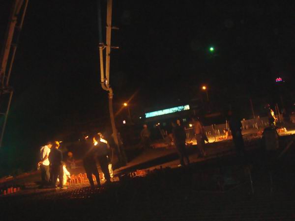 傍晚時分,項目部組織精干力量、調(diào)集性能良好的機械設備陸續(xù)進入引橋澆注場地。18:00隨著一陣隆隆的炮竹聲響過,淠望路大橋引橋首跨上部結構的混凝土澆注便正式開始了,此次澆筑的混凝土位于大橋10號墩與11號墩之間,混凝土體積320方?,F(xiàn)場施工人員克服重重困難,把安徽路橋人的特別能吃苦特別能戰(zhàn)斗的精神發(fā)揮得淋漓盡致;經(jīng)過十多個小時的連續(xù)工作,于2009年6月22日凌晨五點圓滿完成了首跨混凝土的澆筑,受到業(yè)主、監(jiān)理單位的肯定和贊揚,同時也為今后引橋上部結構混凝土的澆筑工作積累了經(jīng)驗。