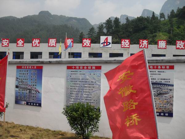 在管理機(jī)構(gòu)方面項(xiàng)目部設(shè)立了工程部、計(jì)劃統(tǒng)計(jì)部、質(zhì)檢部、安全環(huán)保部、協(xié)調(diào)部、財(cái)務(wù)部、材料部、設(shè)備部、綜合事務(wù)部等部門,并制定了各部門的管理制度及崗位職責(zé)。在管理體系方面項(xiàng)目部已建成了質(zhì)量保證體系、安全保障體系、環(huán)境保障體系等,同時(shí)做到了各類制度、圖標(biāo)、標(biāo)語(yǔ)上墻。工地試驗(yàn)室的籌備建設(shè)通過(guò)了湖北省交通廳質(zhì)監(jiān)站的驗(yàn)收,滿足了項(xiàng)目的各項(xiàng)試驗(yàn)檢測(cè)要求。