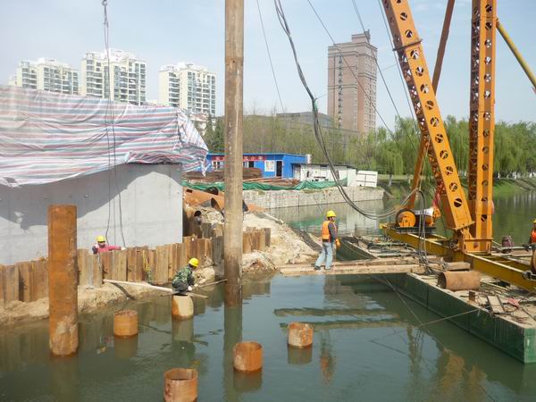 宋斗灣路項(xiàng)目完成南淝河河中鋼管樁打設(shè)工作