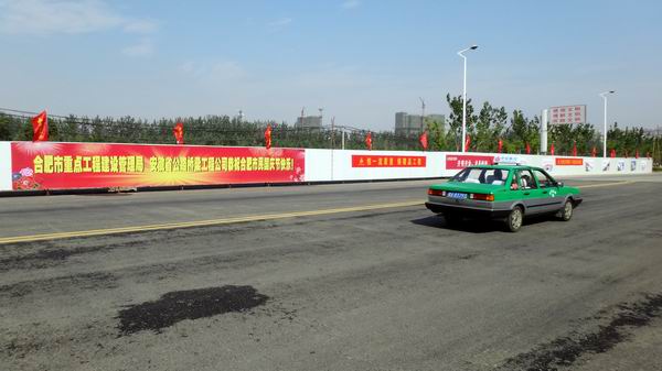為了此次交口的順利通車,項目部做了充分的準備。一、南二環(huán)上跨翡翠路橋墩柱已經(jīng)完成,翡翠路南北方向路面的瀝青已攤鋪完成,具備了通車條件。二、積極與政務區(qū)交警大隊聯(lián)系,做好放行前期交口布置、交通警示裝置的設立及放行后交通線路走向的確定事宜;此外,為了保證施工的封閉性,項目部迅速組織人員將翡翠路與南二環(huán)路交口兩邊的圍擋扎好,保證了車輛通過的安全性。三、為了響應市政府及市重點局號召,項目部做好一系列安全文明工作,如在圍擋兩邊張貼懸掛了大量的警示標語及宣傳條幅,不僅對來往車輛及行人起到一定的警示作用,同時也進一步加強了公司品牌形象的宣傳。四、項目部已于9月18日將翡翠路交口放行的通告發(fā)放到附近居民區(qū)及相關單位,保證交口放行信息傳遞的及時性。