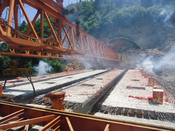 寧績(jī)07標(biāo)成功架設(shè)最后一片箱梁 發(fā)布時(shí)間:2013年06月03日 來(lái)源:寧績(jī)07標(biāo) 發(fā)布人: 作者:衛(wèi)驥午 瀏覽:2766次 6月3日上午10時(shí)58分,伴隨著一陣陣響徹山谷的鞭炮聲,寧績(jī)07標(biāo)項(xiàng)目最后一片箱梁平穩(wěn)準(zhǔn)確地架設(shè)到位。至此該項(xiàng)目箱梁全部架設(shè)完成。