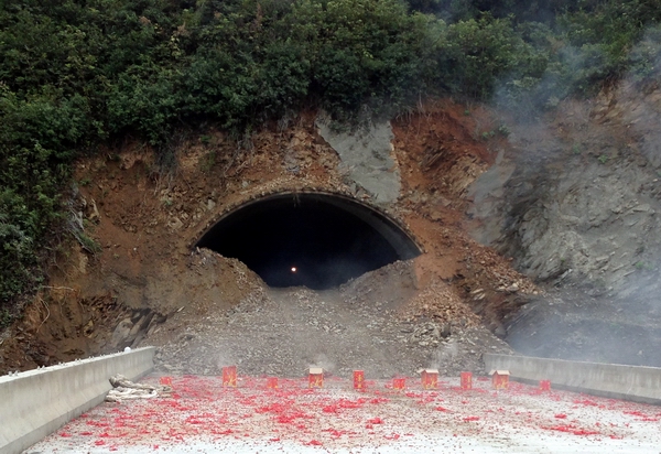 2013年 8月24日18時(shí)20分,經(jīng)過(guò)120多名建設(shè)者800多個(gè)日夜的艱苦奮戰(zhàn),揚(yáng)績(jī)高速寧國(guó)至績(jī)溪段——周灣隧道右幅順利貫通,標(biāo)志著制約寧績(jī)高速全線的最大“卡脖子”工程被全面攻克。