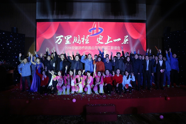12月30日,路面公司2016年新春職工聯(lián)誼會在合肥成功舉辦??偣驹诜暑I導親臨現(xiàn)場并送上祝福,路面公司全體職工及部分職工家屬歡聚一堂,共賀新春。