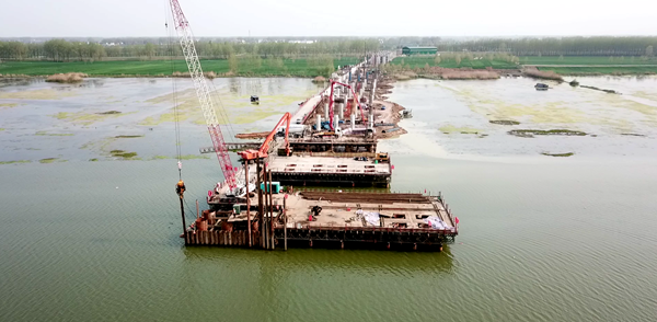 4月8日下午,固蚌高速2標(biāo)兩項(xiàng)節(jié)點(diǎn)目標(biāo)取得突破,控制性工程澮河特大橋南引橋樁基全部完成,39號主墩左幅第一座鋼圍堰順利合攏,同時(shí)各施工點(diǎn)都呈現(xiàn)出一片火熱大干景象。