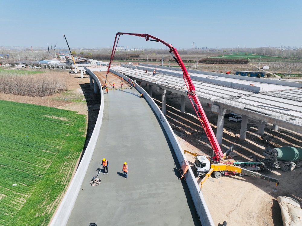 “節(jié)后復(fù)工以來(lái),我們搶抓春季黃金施工期,科學(xué)統(tǒng)籌工程任務(wù),優(yōu)化生產(chǎn)資源配置,在確保安全和質(zhì)量的前提下,加快推進(jìn)工程進(jìn)度?!卑不章窐蛐旎锤犯咚伲ɑ幢倍危┞坊访鏄?biāo)黨支部副書記李天天說(shuō),今年一季度,項(xiàng)目組織600余名建設(shè)者、280余臺(tái)機(jī)械設(shè)備投入施工一線,累計(jì)完成混凝土澆筑2.8587萬(wàn)立方米,澆筑樁基105根,架設(shè)鋼箱梁48節(jié)段,沱河特大橋完成懸臂澆筑施工12塊,完成產(chǎn)值1.4135億元。