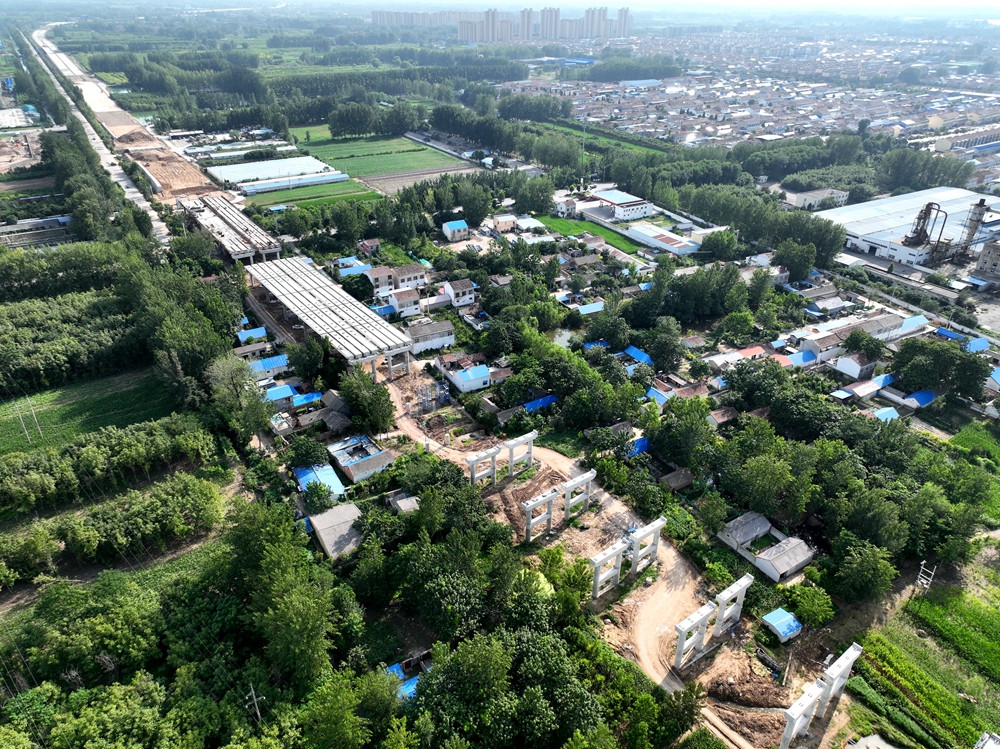 8月13日,在徐淮阜高速淮北段上跨鐵路橋工程建設現場,工程車輛往來穿梭,焊接聲、切割聲此起彼伏,建設者揮汗如雨,爭分奪秒搶進度、趕工期,全力以赴拉滿建設“進度條”。