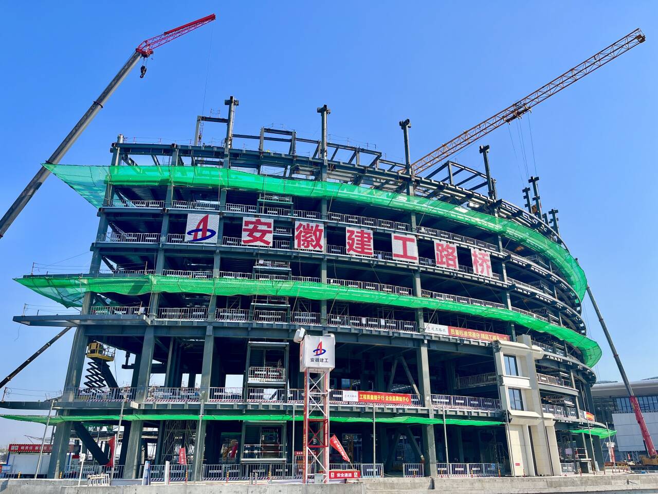 目前,項(xiàng)目正進(jìn)行旅客過(guò)夜用房、多功能廳鋼結(jié)構(gòu)施工及地下車(chē)庫(kù)二次結(jié)構(gòu)、裝飾裝修施工,高峰期間有2400人同時(shí)作業(yè)、近200臺(tái)機(jī)械同步施工,預(yù)計(jì)2025年底完成施工任務(wù)。項(xiàng)目建成投入運(yùn)營(yíng)后,將極大地提升合肥交通能級(jí),助力區(qū)域高質(zhì)量發(fā)展,為長(zhǎng)江經(jīng)濟(jì)帶高質(zhì)量發(fā)展插上“翅膀”。