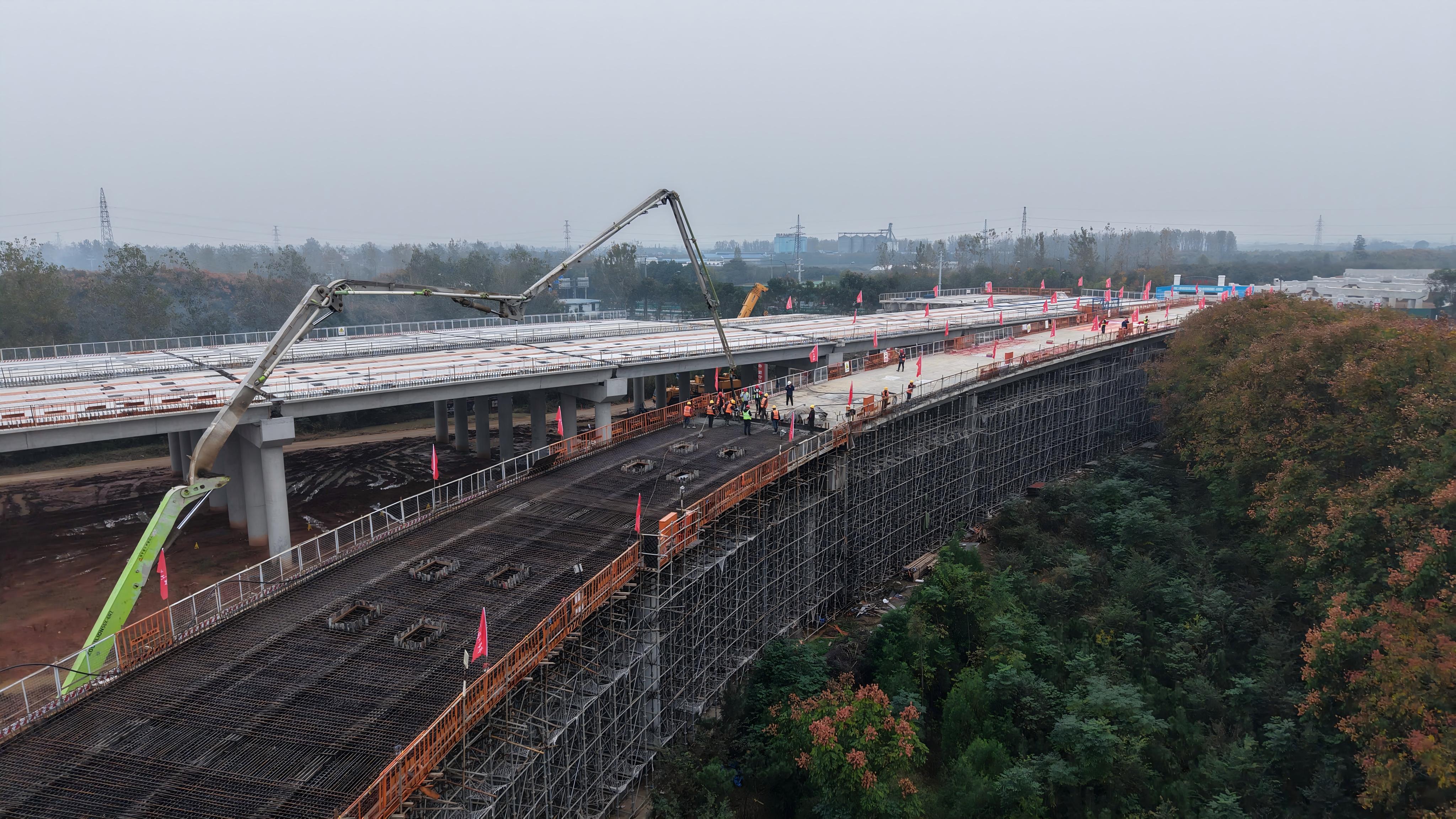 近日,淮桐高速合肥段-2標(biāo)大柏互通D匝道最后一聯(lián)現(xiàn)澆梁施工順利完成澆筑,標(biāo)志著項(xiàng)目現(xiàn)澆梁施工圓滿收官。