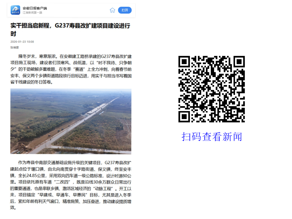 【名媒聚焦】安徽日?qǐng)?bào)、中安在線(xiàn):實(shí)干擔(dān)當(dāng)啟新程,G237壽縣改擴(kuò)建項(xiàng)目建設(shè)進(jìn)行時(shí)