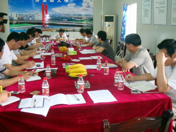 李書記一行首先深入施工現(xiàn)場,一邊詢問工程進展情況,一邊查看和指導。隨后在淠望路項目部會議室聽取了六安市建委、項目監(jiān)理單位、施工單位對淠望路大橋項目管理、施工進度等情況的匯報。李書記在肯定項目前期工作成績的同時,對淠望路大橋后期施工工作提出了具體要求和指導意見:一、工程項目重要性。淠望路大橋乃是六安市重點建設工程之一,地處城市核心地帶,是貫通新老城區(qū)的一條重要聯(lián)系紐帶,建成后將成為六安市標志性的建筑;二、目標要明確。淠望路大橋的建設是六安人民關注的焦點,政治和社會意義重大,市委市政府高度重視。要求施工單位要加強質量控制,加快工程進度,在施工各個環(huán)節(jié)力求做到科學化、規(guī)范化、程序化、標準化,要優(yōu)質、高效、安全、按期完成淠望路大橋施工任務,力爭奪取“黃山杯”;三、措施要有效。要求施工單位加大機械設備和人員的投入,并認真落實各項措施,確保組織管理到位,現(xiàn)場技術力量到位,既定進度到位,安全管理到位,質量控制工作到位,爭取把淠望路大橋建成優(yōu)質工程,早日向六安市人民交上一份滿意的答卷。最后,李書記對安徽路橋在淠望路大橋建設中做出的努力給予了高度的評價。