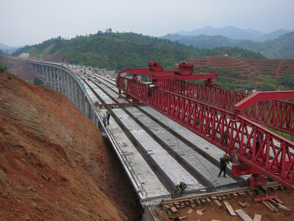 今年贛南雨季較之往年稍微提前,三月雨水繁多,給江口大橋的梁板安裝帶來了很大影響。作為開年施工建設(shè)中的控制性施工點,我部積極采取多種措施,在確保施工安全和工程質(zhì)量的前提下,大力推進(jìn)梁板安裝施工進(jìn)度。項目部成立以項目經(jīng)理為組長的梁板安裝工作組,搶抓有利天氣開展安裝工作,于2012年3月26日創(chuàng)造全線單天安裝10片30米T梁的記錄(包括架橋機(jī)過孔),扎扎實實的把工作落在實處,為我部完成江口大橋的半幅貫通奠定了堅實基礎(chǔ)。