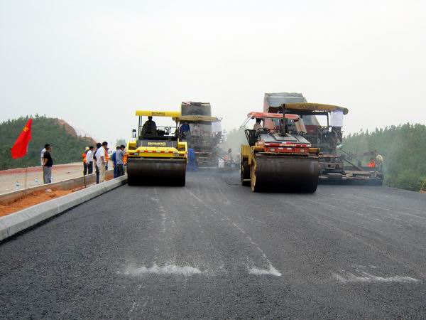 為了確保此次試驗段的順利攤鋪,項目部研究制定了詳細的施工方案,并提前召開了專項方案技術(shù)交底會,對施工工藝流程、施工組織安排及注意事項等進行了詳細的交底。28日早上,在項目領(lǐng)導(dǎo)的精心安排和組織下,我部工程技術(shù)人員和作業(yè)人員對瀝青試驗段攤鋪現(xiàn)場和瀝青拌和站進行準(zhǔn)備工作和設(shè)備最后檢查。上午11時,伴隨著陣陣鞭炮聲,此次瀝青試驗段按照預(yù)先計劃順利攤鋪,現(xiàn)場機械在指揮人員的引導(dǎo)下有條不紊的作業(yè)。最終經(jīng)過我部廣大施工作業(yè)人員的齊心努力,下午18時順利完成此次ATB-25瀝青碎石上基層試驗段的攤鋪。